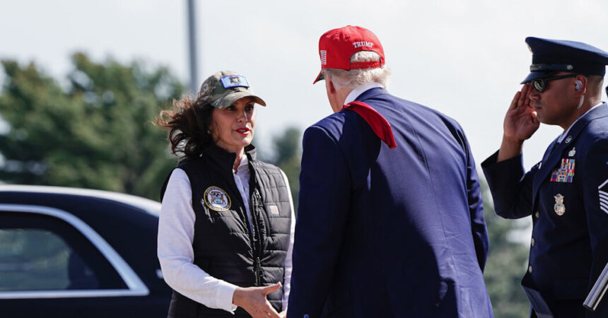 Then, when Trump traveled to Michigan on Tuesday to announce in his day 100 in the position he was doing precisely what Mrs. Whitmer had asked, she had reasons for a return of victory, despite the possible cost for her political perspectives. She greeted him upon arrival, creating another photo of them together, and then Letly stopped by her side to comment by thanking him for expanding the base.